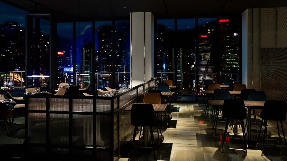 Front-of-house visuals aligned with final interior finishes and material selections